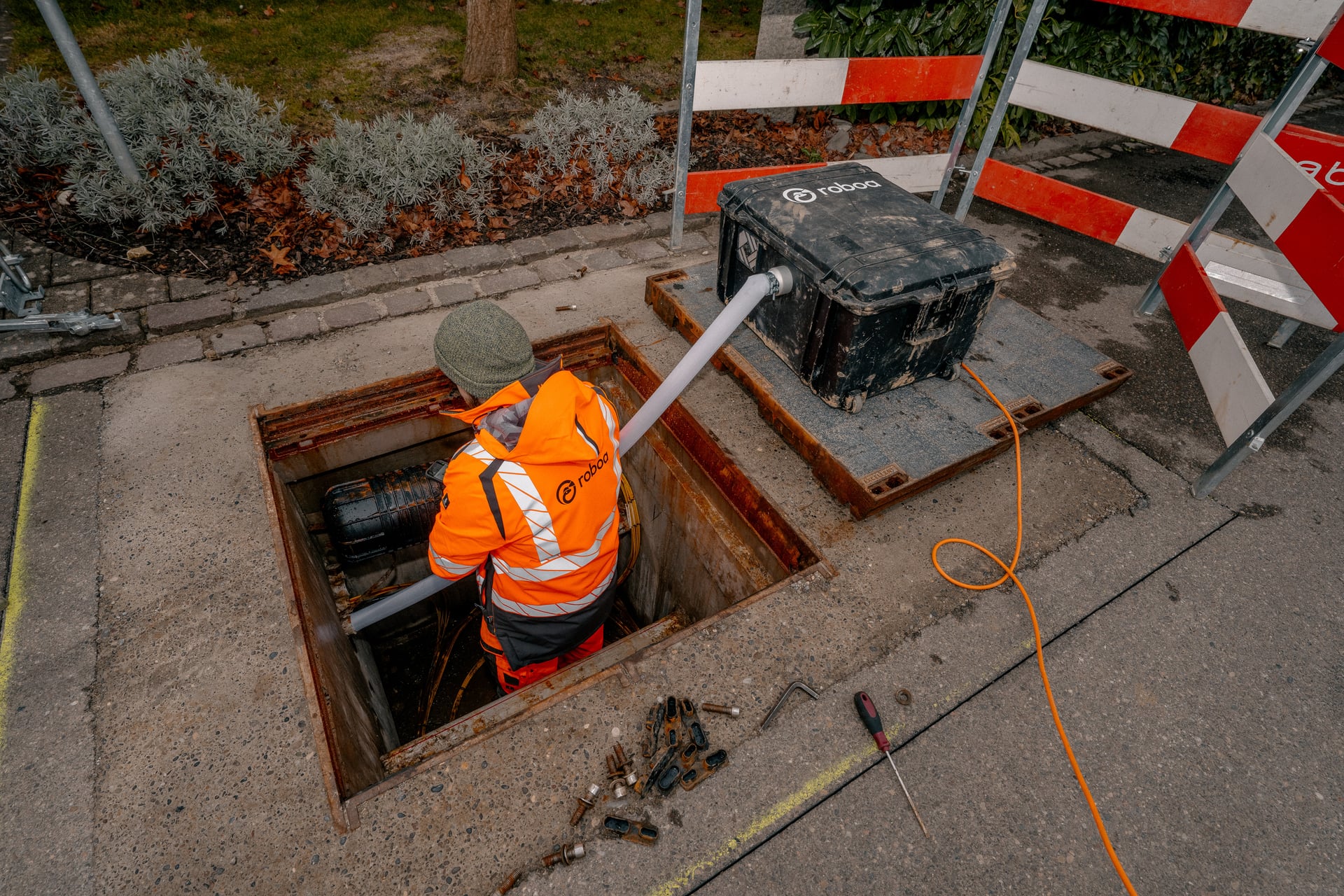 Use roboa to deploy cables in existing ducts, where other methods fail. roboa can move through blockages, misalignments and along curves by growing into the conduit and reaching its goal. Grab the cable and pull it back in, all while being protected by roboa’s advanced materials.